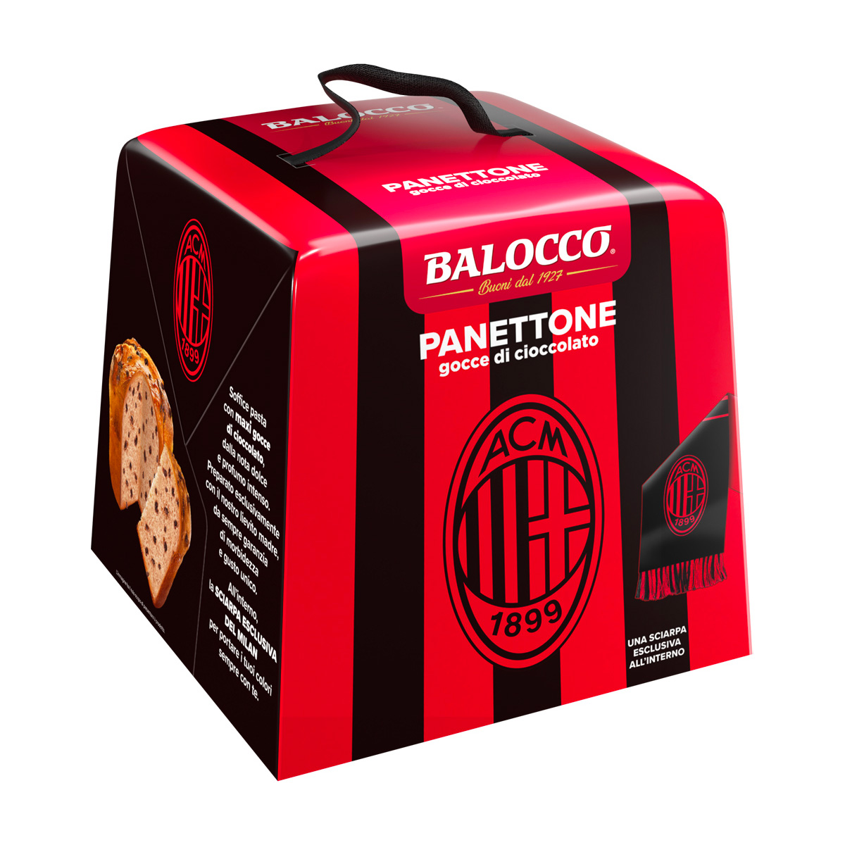Balocco Panettone Gocce di Cioccolato, con Sciarpa Ufficiale Milan 500g