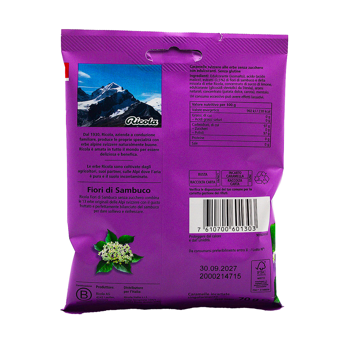 Ricola Fiori di Sambuco, Caramelle Svizzere Alle Erbe 70g