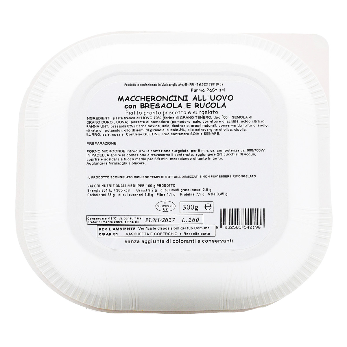 Parma Past Maccheroncini all'Uovo con Bresaola e Rucola 300g