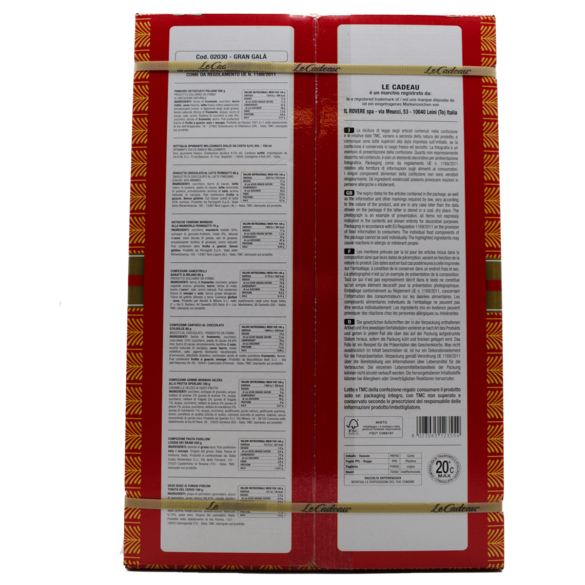 | Denominazione: | Vassoio serigrafato Paluani pandoro 500g Da Costa spumante millesimato dolce 0,75l Pernigotti tavoletta cioccolato al latte 80g Pernigotti torrone morbido alla mandorla 75g Baratti&Milano canestrelli 80g Stildolce cantucci al cioccolato 80g Sperlari gemme morbide gelées alla frutta 100g Loggia dei Grani pasta fusilloni 250g Tenuta del Cervo sugo ai funghi porcini 190g |