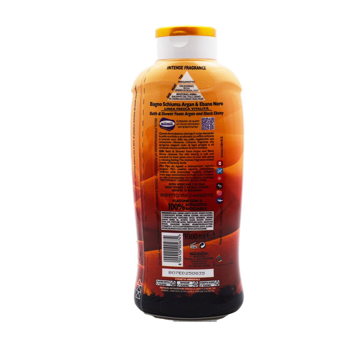 Milmil Bagnocrema, Argan e Ebano Nero 1l