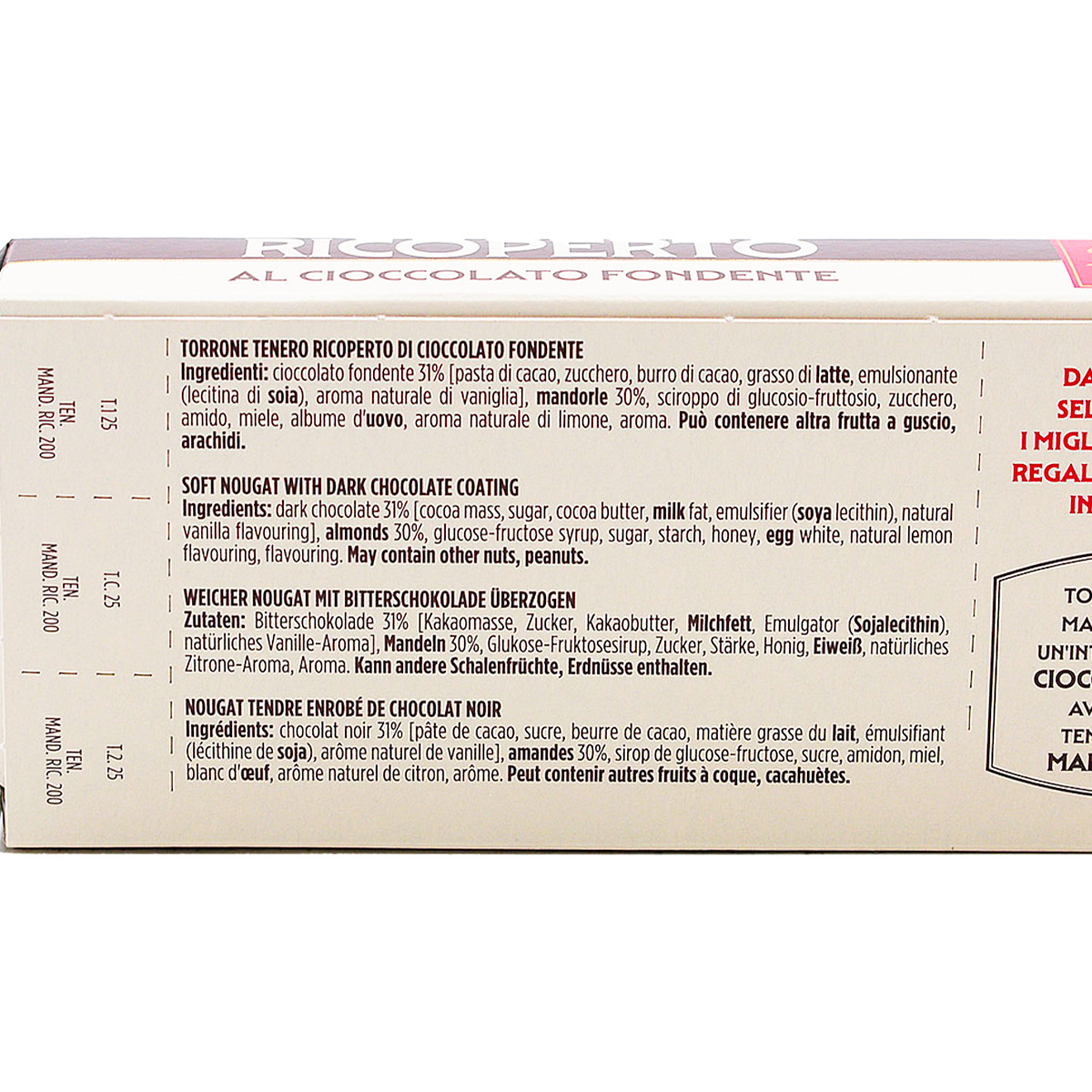 Sperlari Torrone Tenero alla Mandorla Ricoperto di Cioccolato Fondente 200g