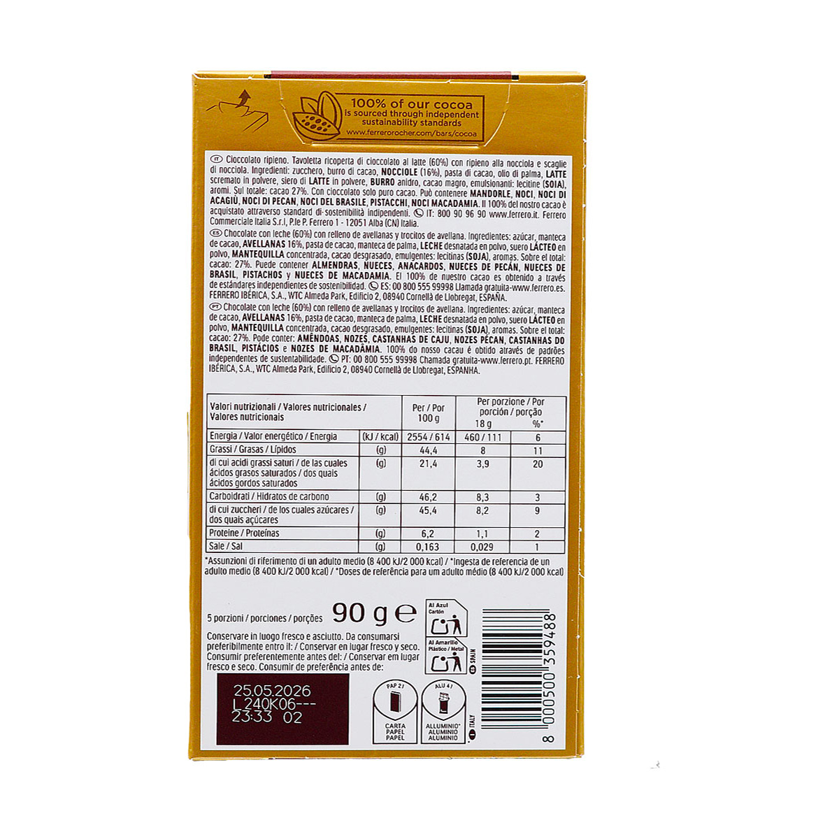 Ferrero Rocher Tavoletta al Latte con Nocciole 90g