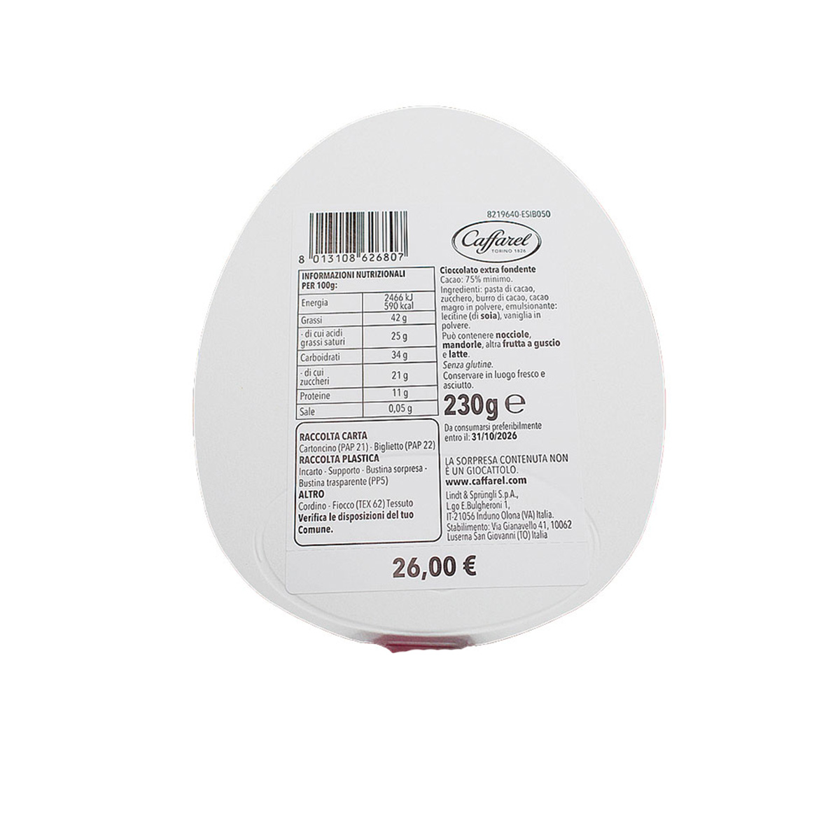 Caffarel Uovo di Pasqua al Cioccolato Fondente Intenso 75% 230g