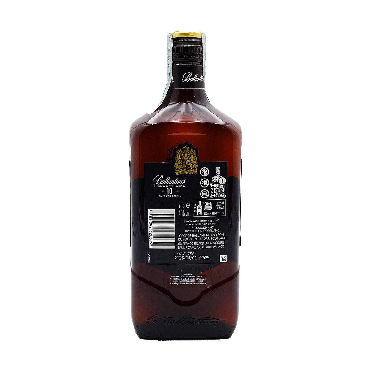 Un whisky scozzese che unisce la tradizione a un tocco moderno, offrendo un'esperienza di gusto unica all'interno della famiglia Ballantine. Questo Blended, per la sua maturazione di 10 anni, si presenta come un'opzione premium che riflette la maestria della sua elaborazione.