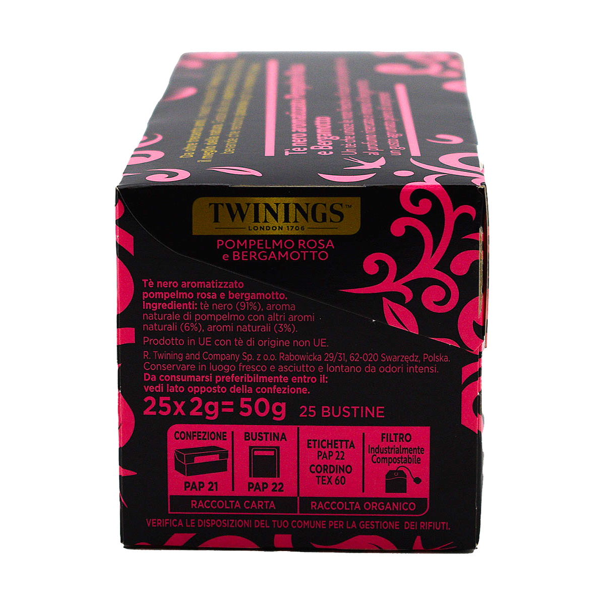 Twinings Tè Nero Aromatizzato Pompelmo Rosa e Bergamotto 25 Filtri