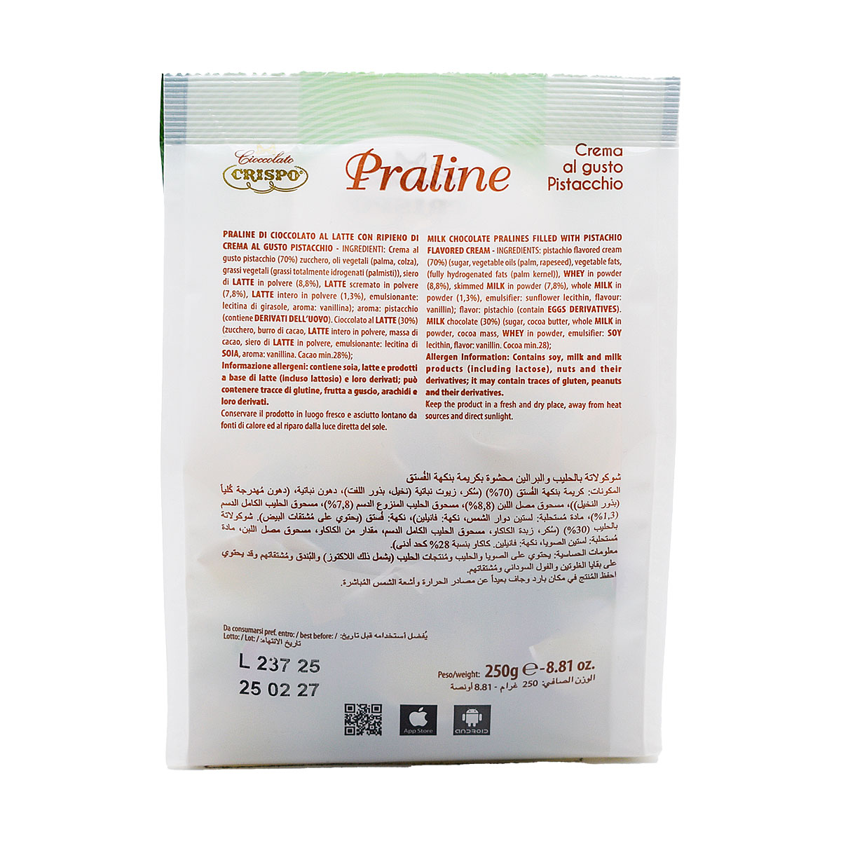 Crispo Praline di Cioccolato al Latte Ripiene di Crema al Gusto Pistacchio 250g