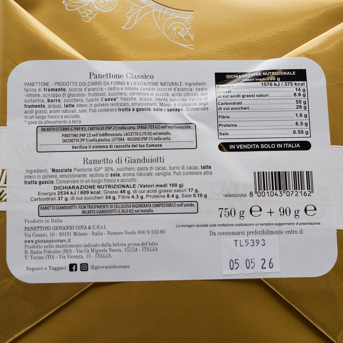 Giovanni Cova & C. Panettone Classico con Rametto di Gianduiotti 750g+ 90g