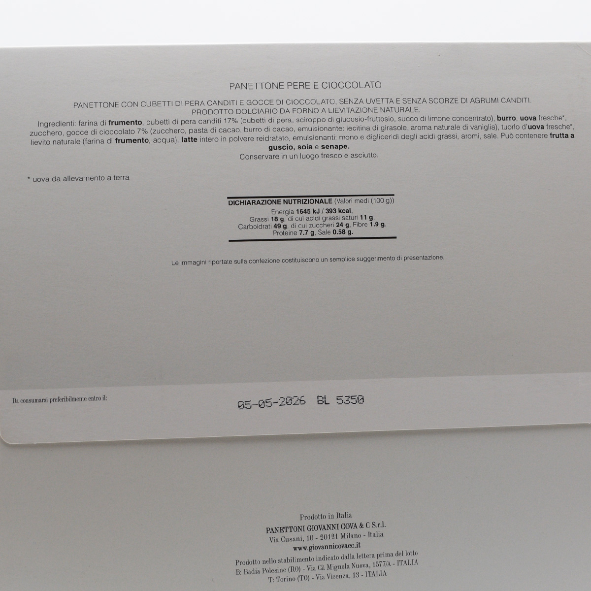 Giovanni Cova & C. Panettone Pere e Cioccolato 1Kg