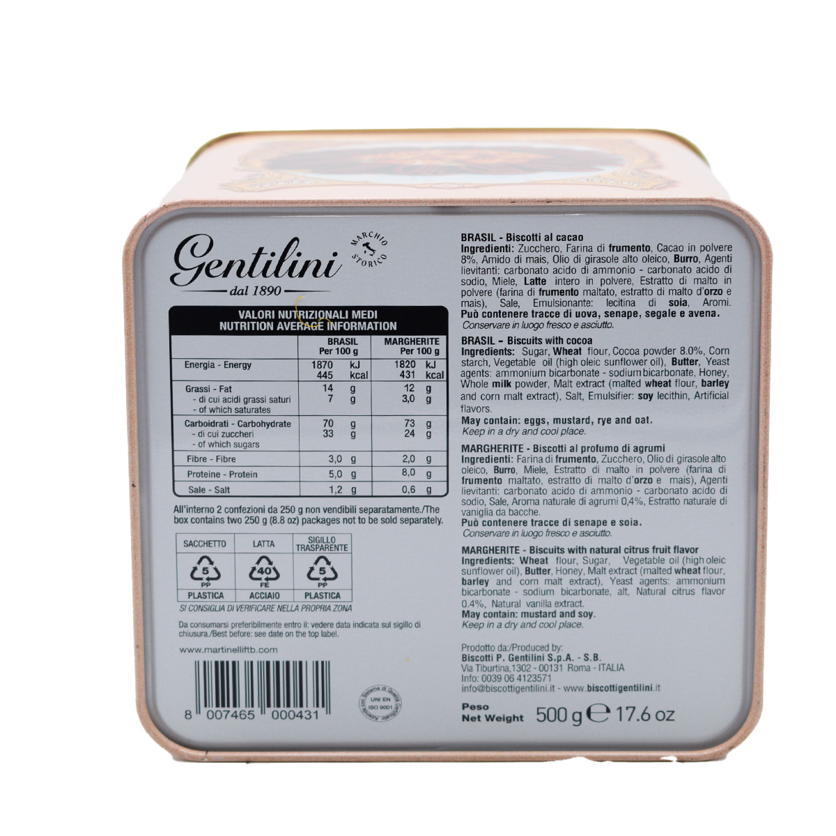 Gentilini Biscottiera Riediting, Biscotti al Cacao 500g