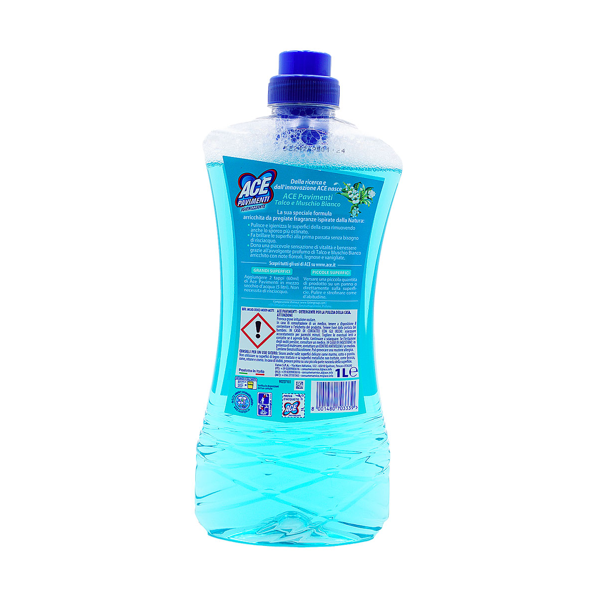 Ace Pavimenti Igienizzante, Talco e Muschio Bianco, Senza Candeggina, Senza Risciacquo 1l