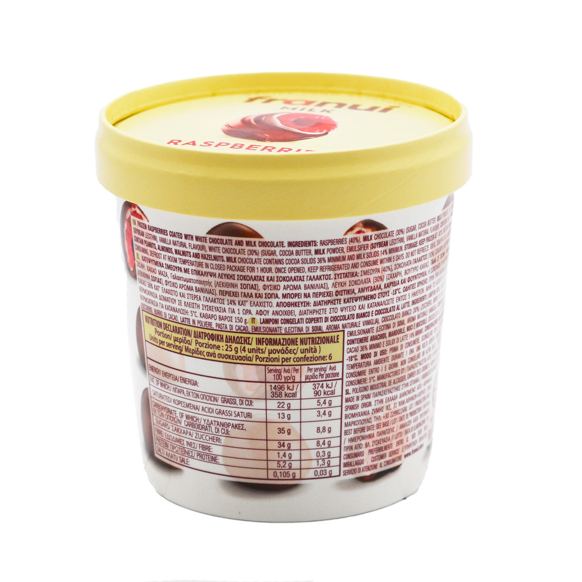 Franui Milk, lamponi con cioccolato bianco e al latte 150g