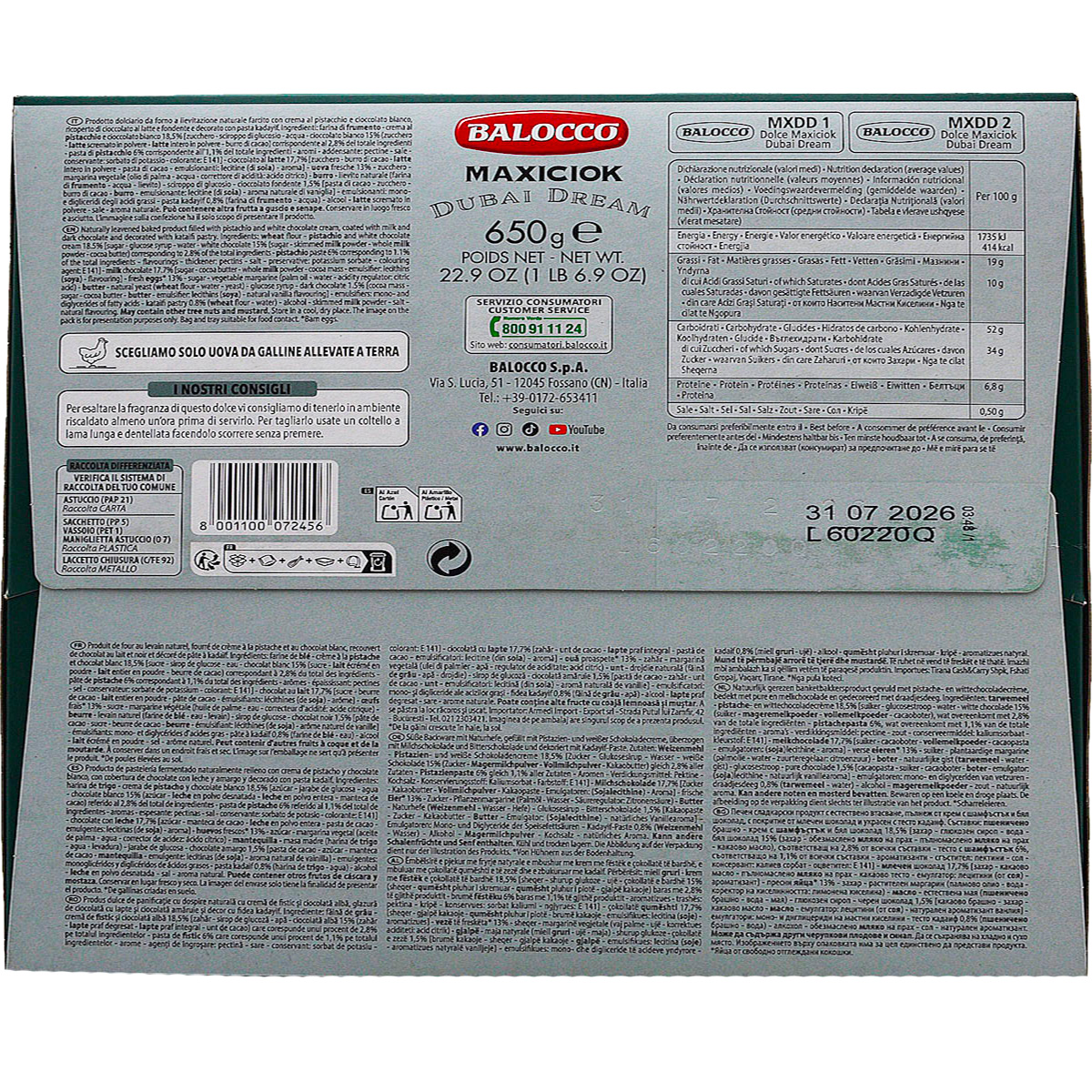 Balocco Maxiciok Dubai Dream, con Crema di Pistacchio e Cioccolato Bianco 650g