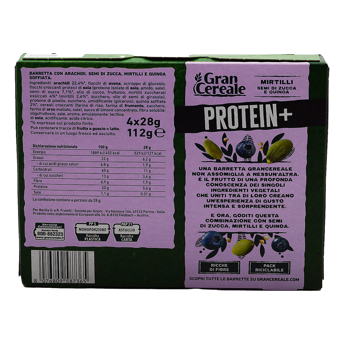 Gran Cereale Protein+Mirtilli, Semi di Zcca e Quinoa 4x28g