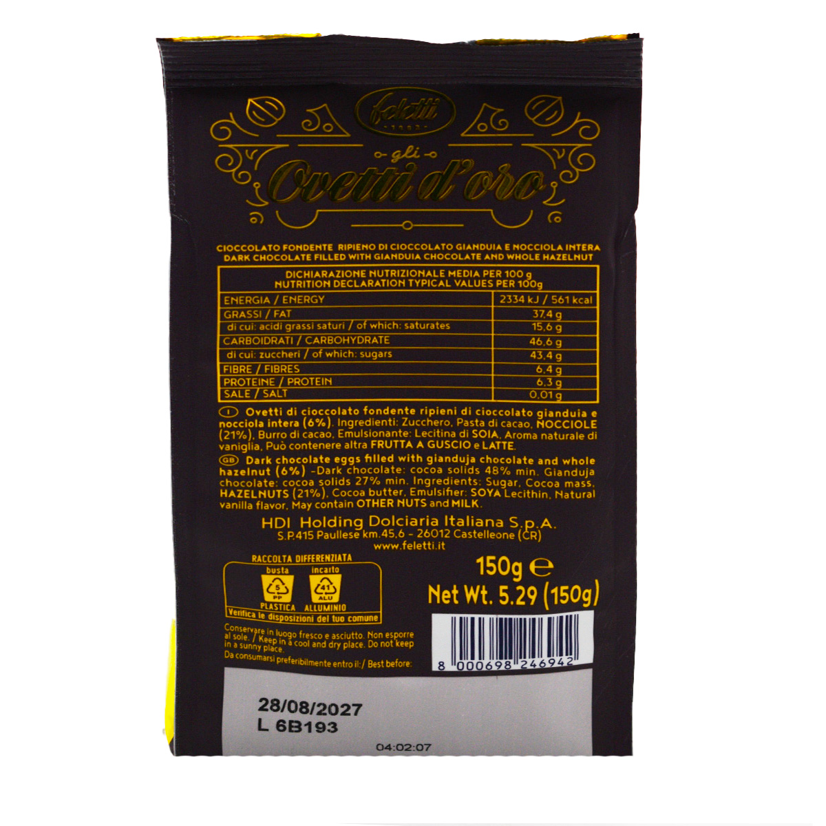 Feletti Ovetti d'Oro Crema Gianduia 150gg