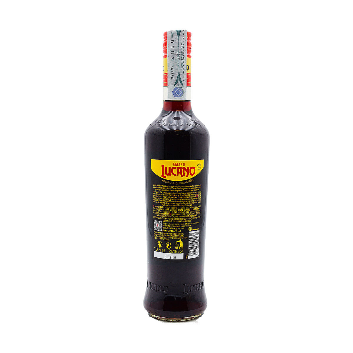 Effettuare login per visualizzare prezzi ed effettuare ordini| Denominazione: | Amaro Lucano nasce nel 1894 da una ricetta segreta che la famiglia Vena tramanda di generazione in generazione. Il suo gusto e' deciso ed equilibrato, grazie alla sapiente miscelazione di piu' di trenta erbe selezionate; La maturazione e' la fase a cui viene prestata particolare attenzione, poiche' e' il periodo in cui il gusto si affina, diventa armonioso ed omogeneo, dalle gradevoli note agrumate e floreali, tratti caratteristici di Amaro Lucano. |