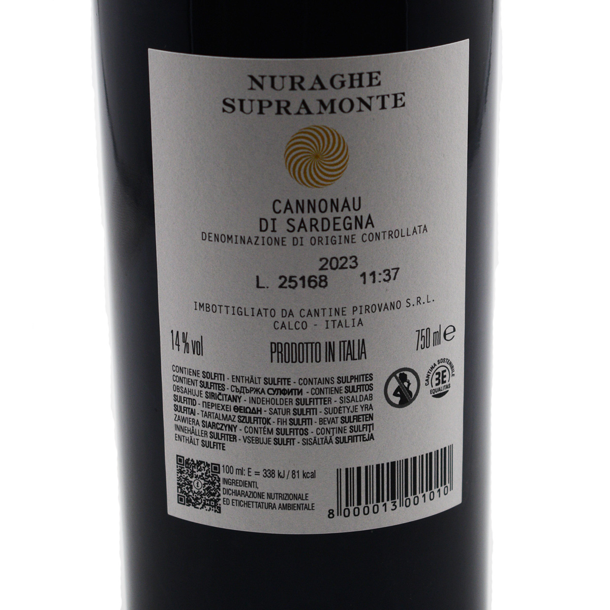 Il sapore è morbido e leggermente tannico.; Annata: 2023; Vitigno: Cannonau; Produttore: Nuraghe Sopramonte; Paese: ITALIA; Regione: Sardegna;